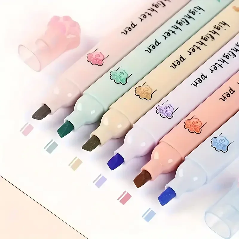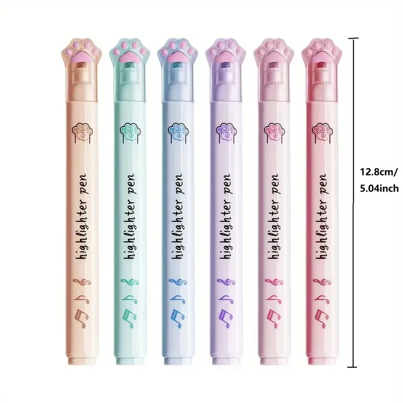 Set de 6 surligneurs originaux avec un capuchon en forme de patte de chat.