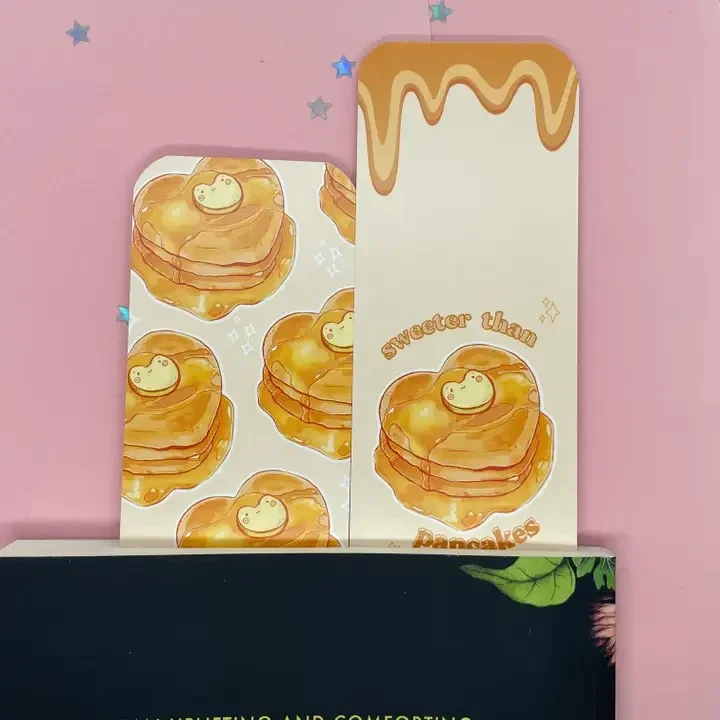 Ce marque-page aux coins arrondis est souple mais robuste, recto-verso avec deux impressions différentes. La face arrière présente un motif répété du motif de crêpe.